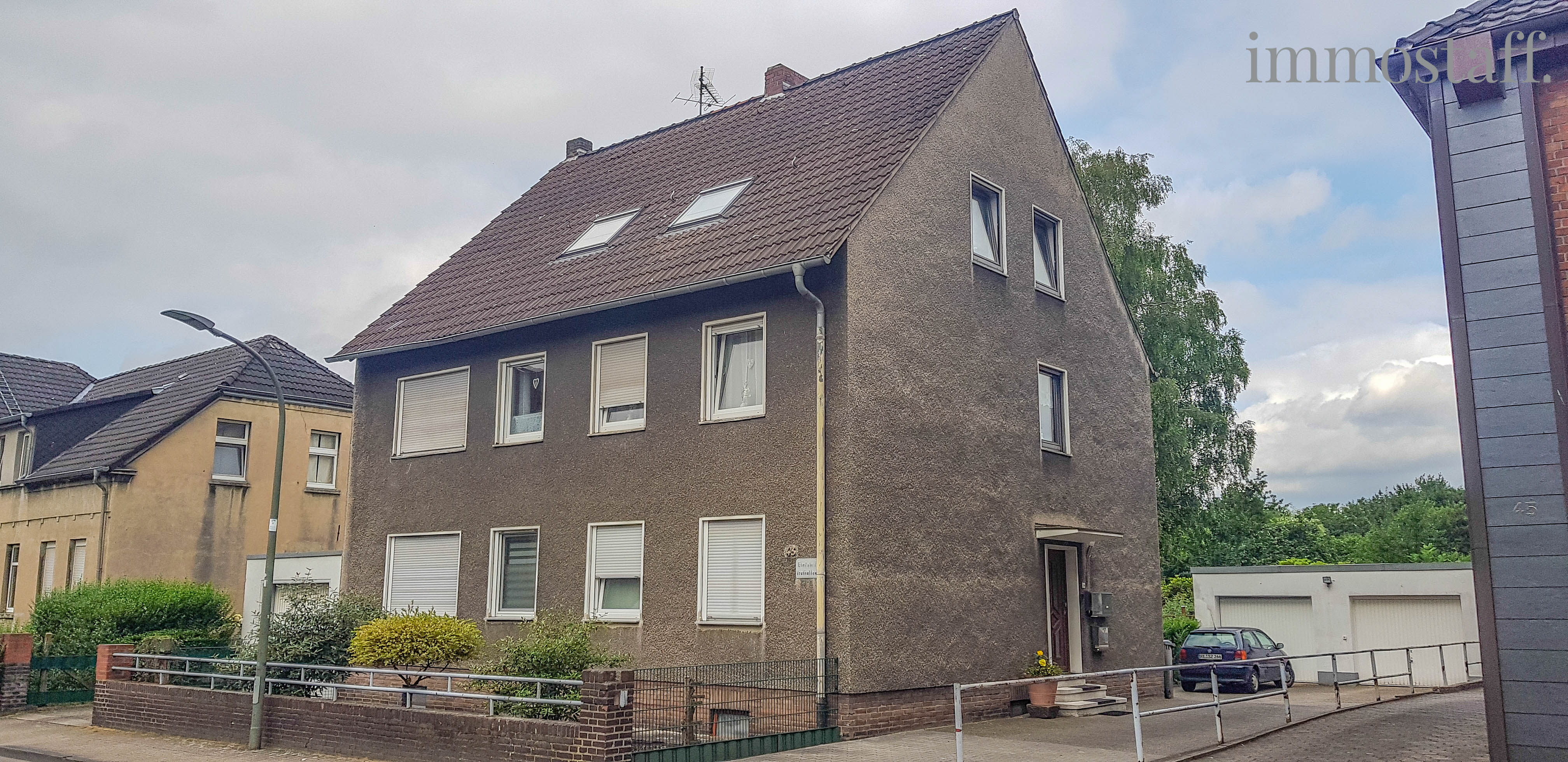 Objektbeschreibung: Bei der hier zum Verkauf stehenden Immobilie handelt es sich um ein freistehendes Dreifamilienhaus, welches 1958 in Massivbauweise erreichtet wurde (Betondecken). Die Immobilie steht auf einem 530 m² großen Kaufgrundstück in ruhiger Lage und ist voll unterkellert. Neben und hinter dem Haus befinden…